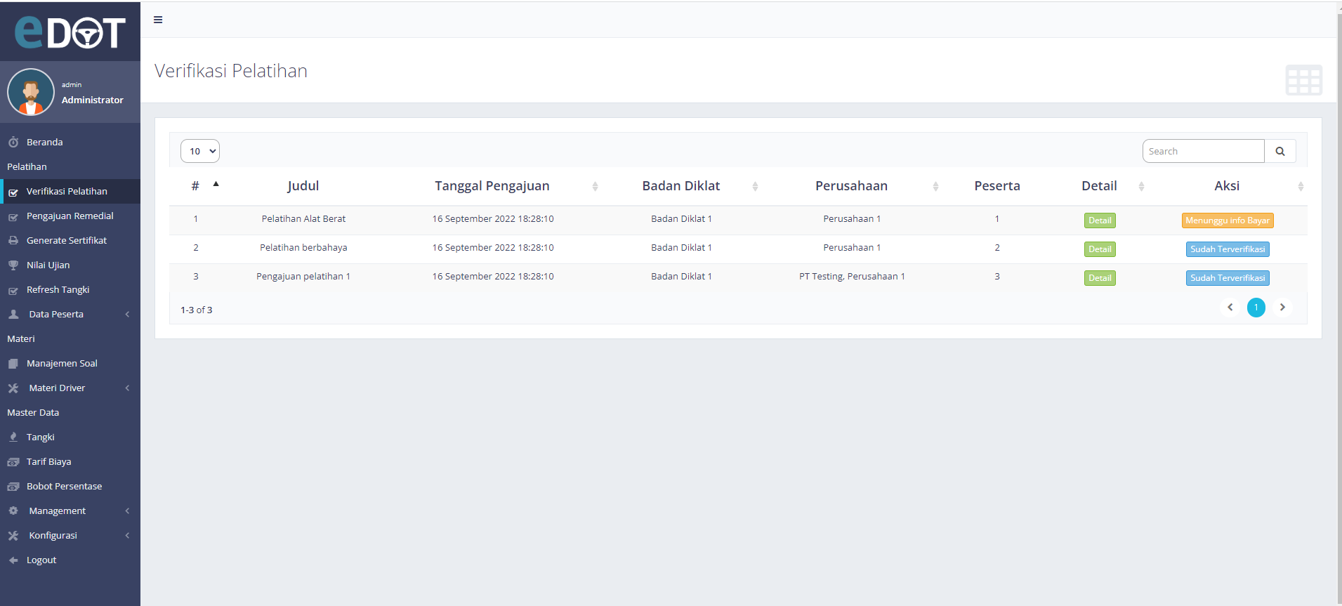 Web apps for driver to get sertification for handling dangerous vehicle Online - Kemenhub
